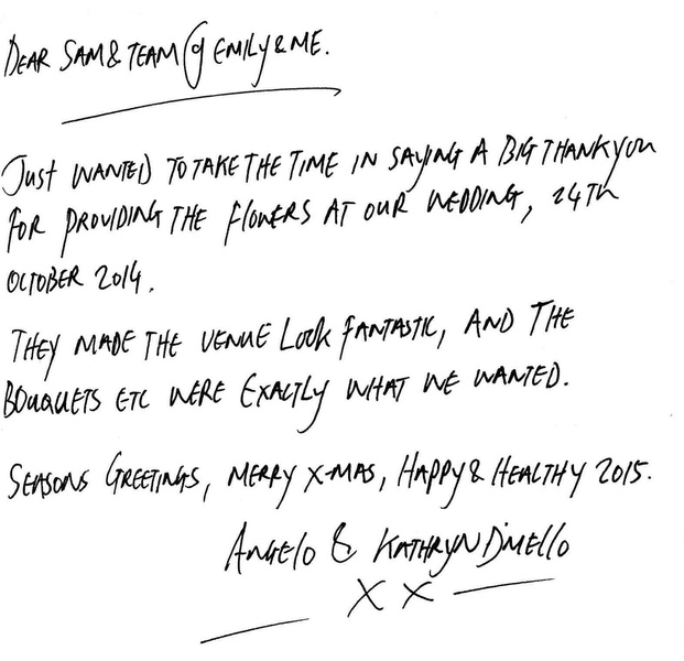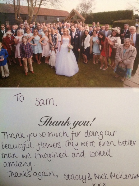 'Dear Sam, Sending you sooo many thank you's for the fantastic flowers, which were more beautiful than I could have imagined'